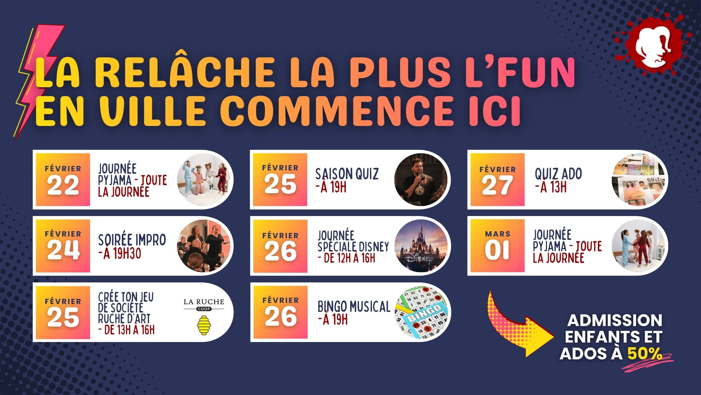 | Vendredi 27 février | 12h00 à 1h00 |